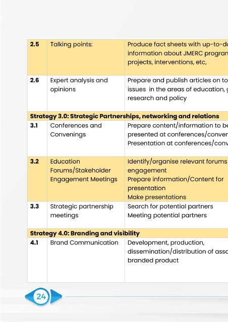 3.3 Strategic partnership Search for potential partners Meetings convened Management